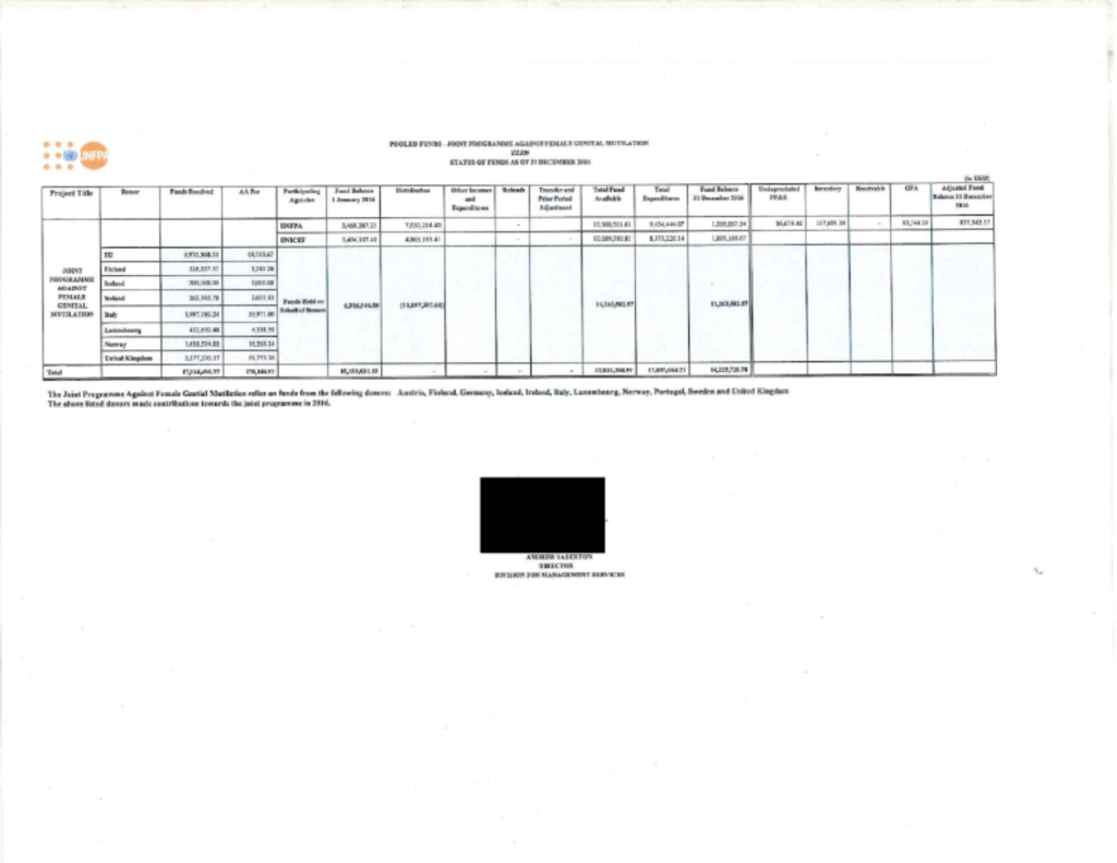 2016 Annual Financial Statement for the Joint Programme on the Elimination of Female Genital Mutilation
