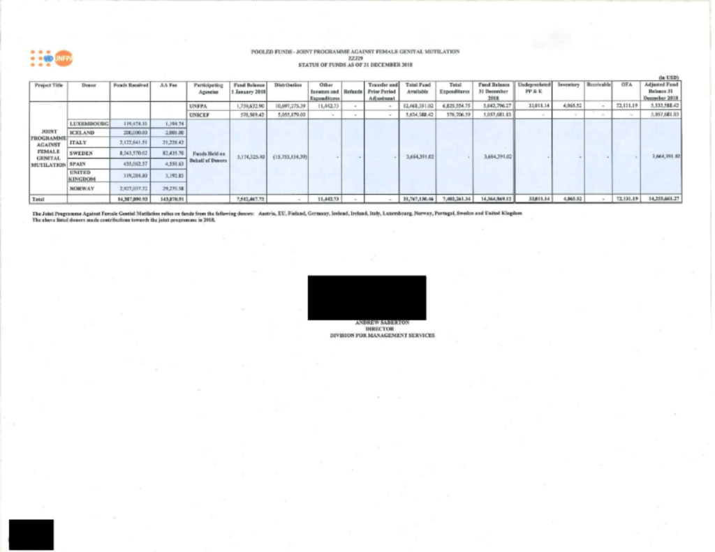2018 Annual Financial Statement for the Joint Programme on the Elimination of Female Genital Mutilation