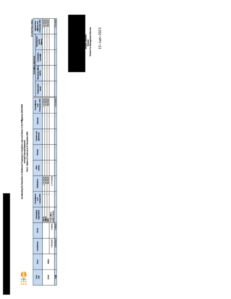 2022 Annual Financial Statement for the Joint Programme Accelerating the Reduction of Adolescent Pregnancy in Southern Leyte and Samar in the Philippines