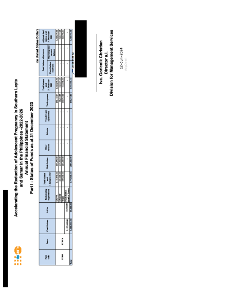 2023 Annual Financial Statement for the Joint Programme Accelerating the Reduction of Adolescent Pregnancy in Southern Leyte and Samar in the Philippines
