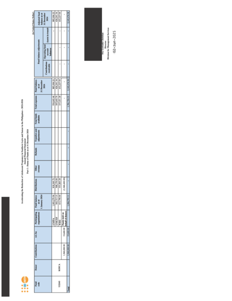 2024 Annual Financial Statement for the Joint Programme Accelerating the Reduction of Adolescent Pregnancy in Southern Leyte and Samar in the Philippines