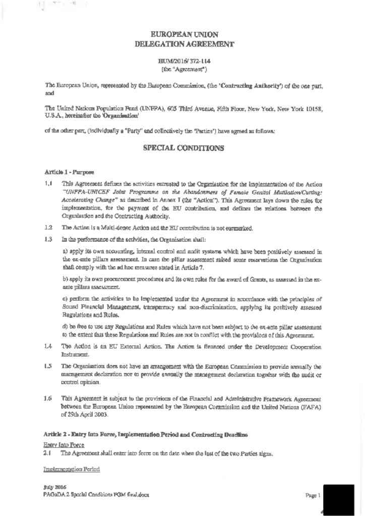 This is an agreement signed between UNFPA and the European Union for the Joint Programme on the Elimination of Female Genital Mutilation