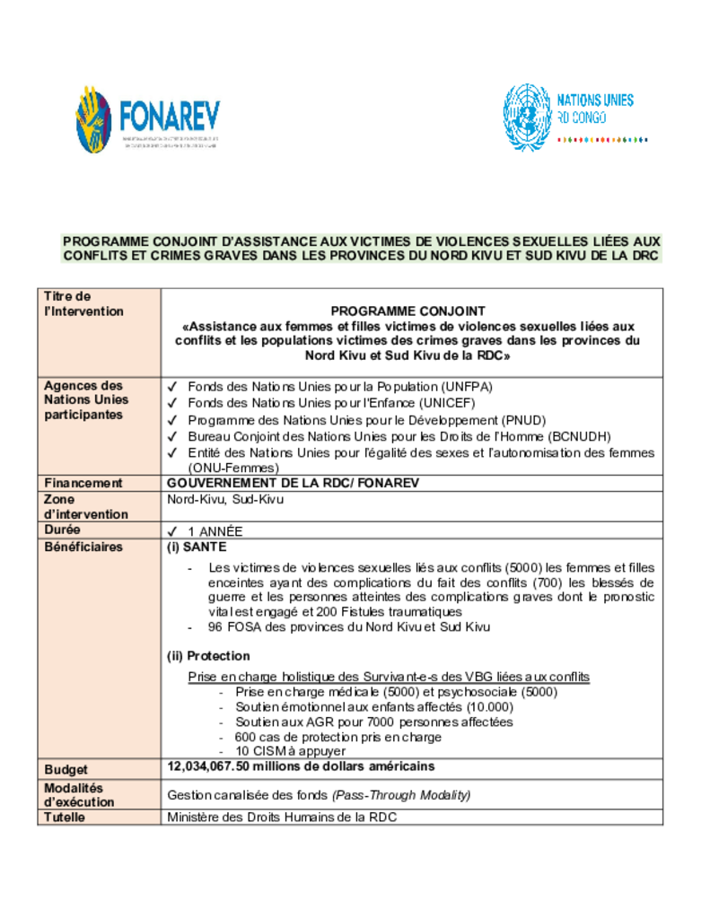 Annex A of the SAA for the Joint Programme in support of victims of conflict-related sexual violence in DRC