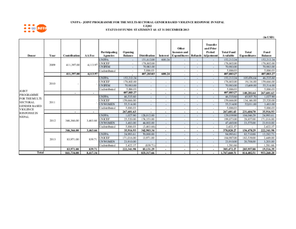 Financials for Muiti-Sectoral Gender Based Violence at District Level UZJ02