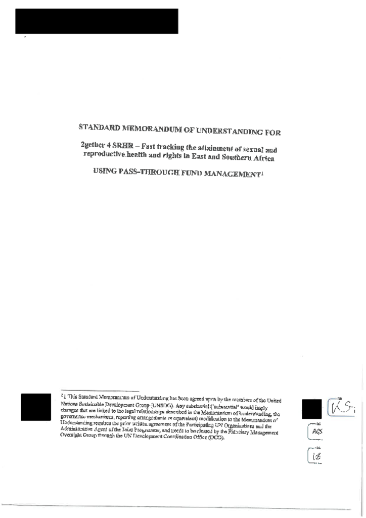 This is a Memorandum of Understanding signed between UNFPA and Partner UN Organizations for the 2gether 4 SRHR Joint Programme