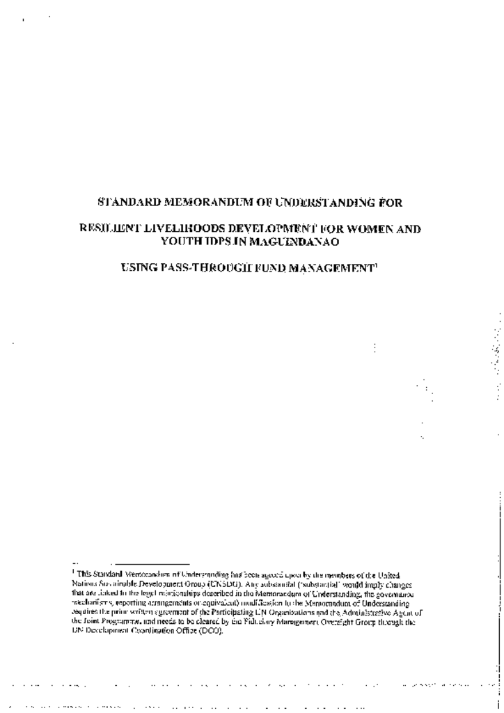 This is the Memorandum of Understanding signed between UNFPA and Partner UN Organizations for the Resilient Livelihoods Development for Women & Youth IPP's in Maguindanao Joint Programme
