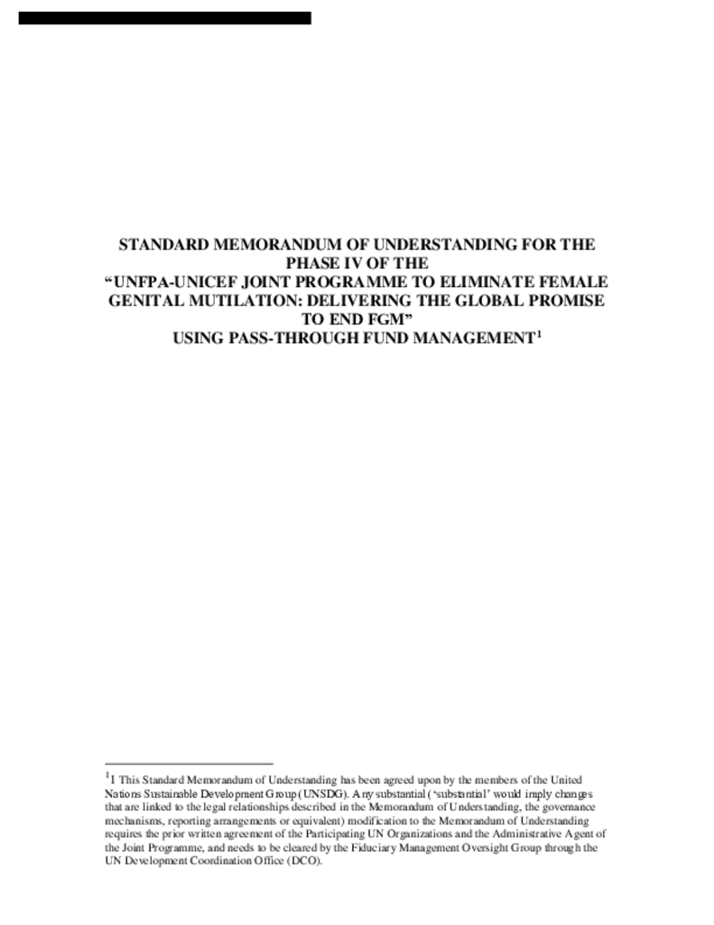 This is a Memorandum of Understanding signed between UNFPA and UNICEF for Phase IV of the Joint Programme on the Elimination of Female Genital Mutilation