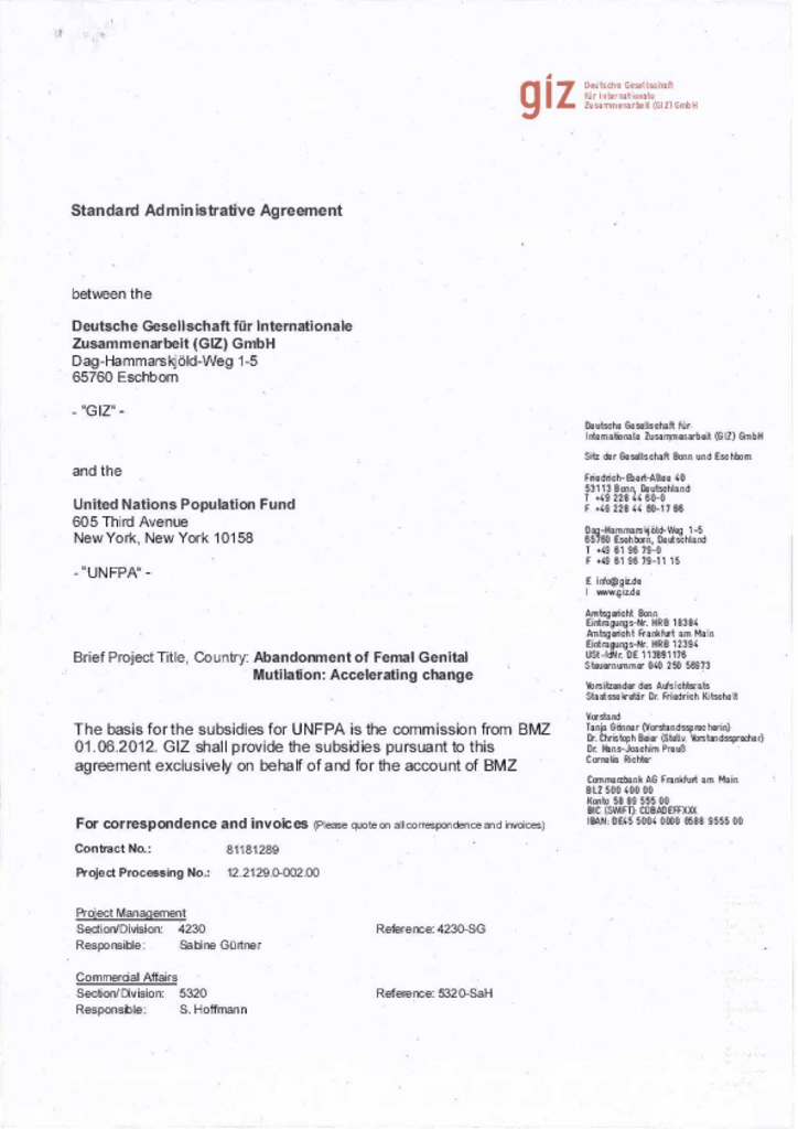 SAA between UNFPA and GIZ for Phase II of the Joint Programme on the Elimination of Female Genital Mutilation