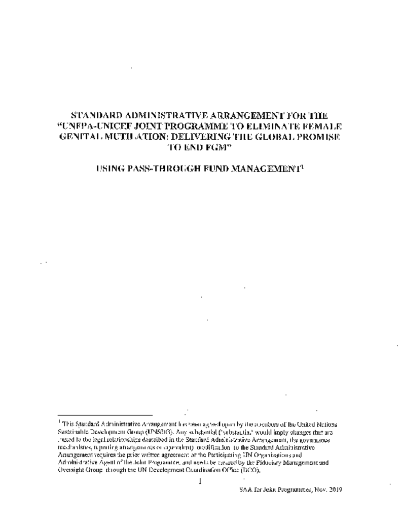 This is a Standard Administrative Arrangement signed between UNFPA and the Government of Iceland for the Joint Programme on the Elimination of Female Genital Mutilation Phase IV