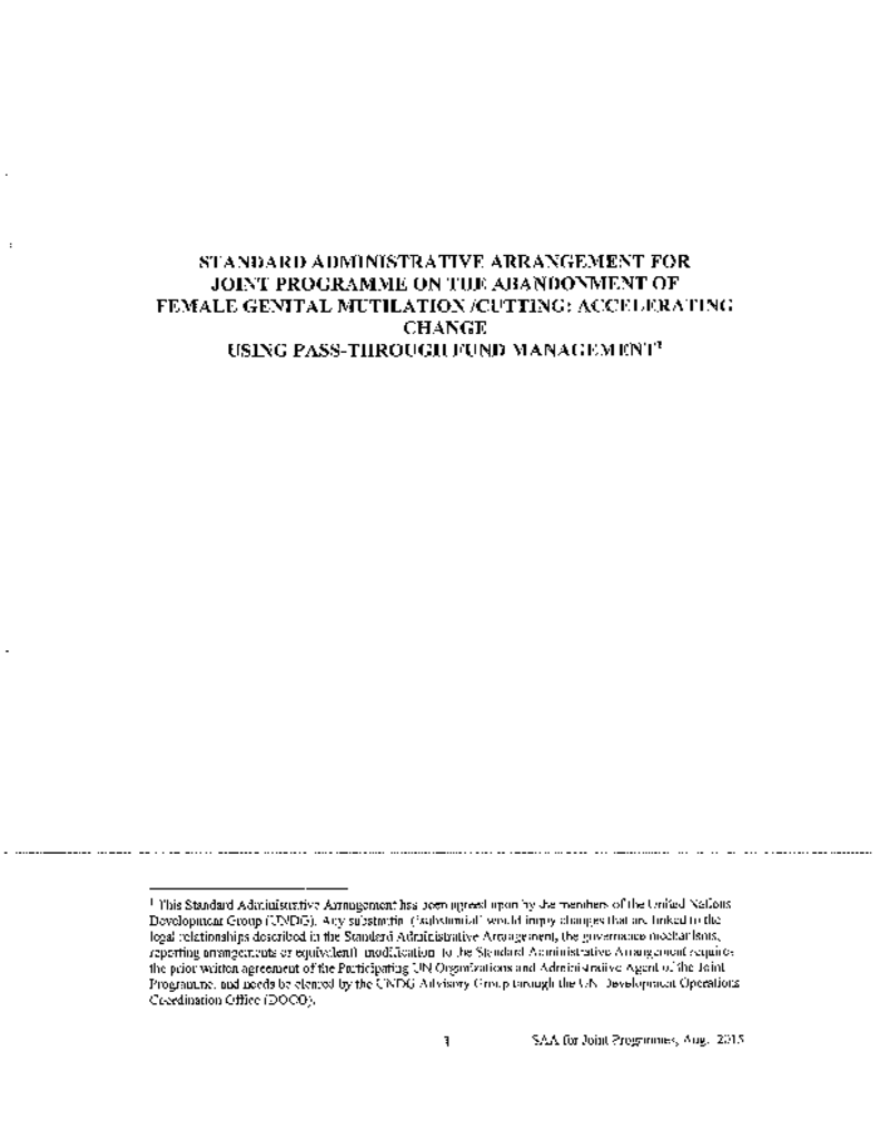 This is a Standard Administrative Arrangement signed between UNFPA and the Government of Italy for the Joint Programme on the Elimination of Female Genital Mutilation Phase III