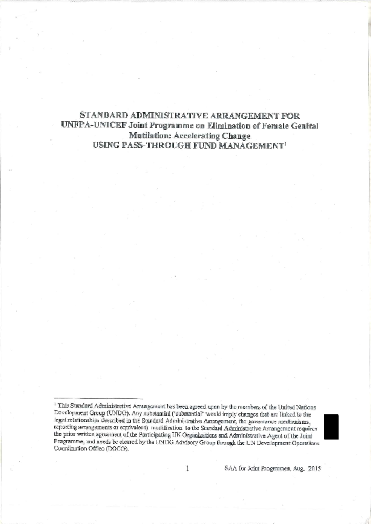 This is the Standard Administrative Arrangement signed between the Government of Norway and UNFPA for Phase III of the Joint Programme on the Elimination of Female Genital Mutilation