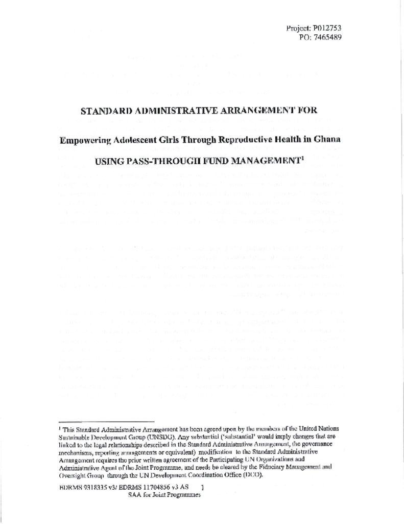 This is a Standard Administrative Arrangement signed between UNFPA and the Government of Canada for the Joint Programme Empowering Adolescent Girls Through Reproductive Health in Ghana