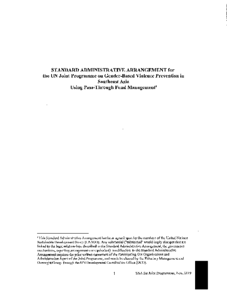 This is the Standard Administrative Arrangement signed between UNFPA and the Government of Australia for the Joint Programme Gender-Based Violence Prevention in Southeast Asia