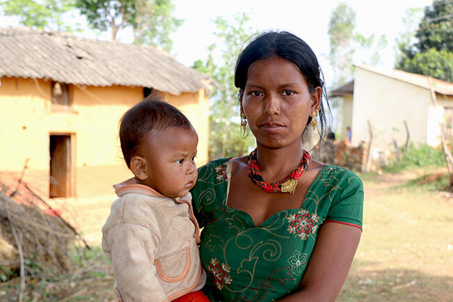 Rabina Danuwar and her 14-month-old son are now homeless. Pregnant women, new mothers and infants are all in need of assistance. © UNFPA Nepal/Santosh Chhetri