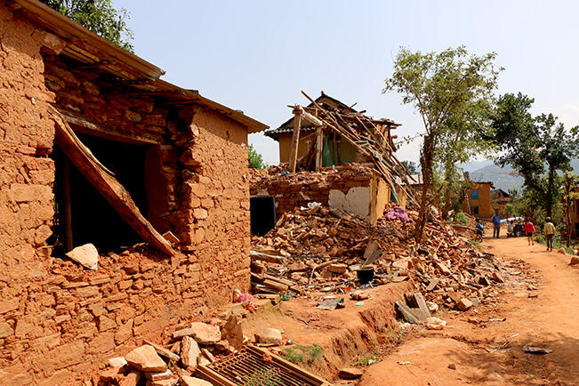 The disaster has been devastating. Most of the houses in Rampur Village, in Kavre District, have been flattened. © UNFPA Nepal/Santosh Chhetri