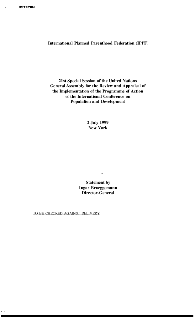 Workflow State Draft Resource Date Fri, 07/02/1999 - 12:00 Date selector Show Year Overwrite Thumb Image Off Show feature No Resource Document Available Languages English Upload file ippf.pdf27.94 KB Template Selector Template 2 - with PDF in full size Related Tags ICPD ICPD Document Type Records