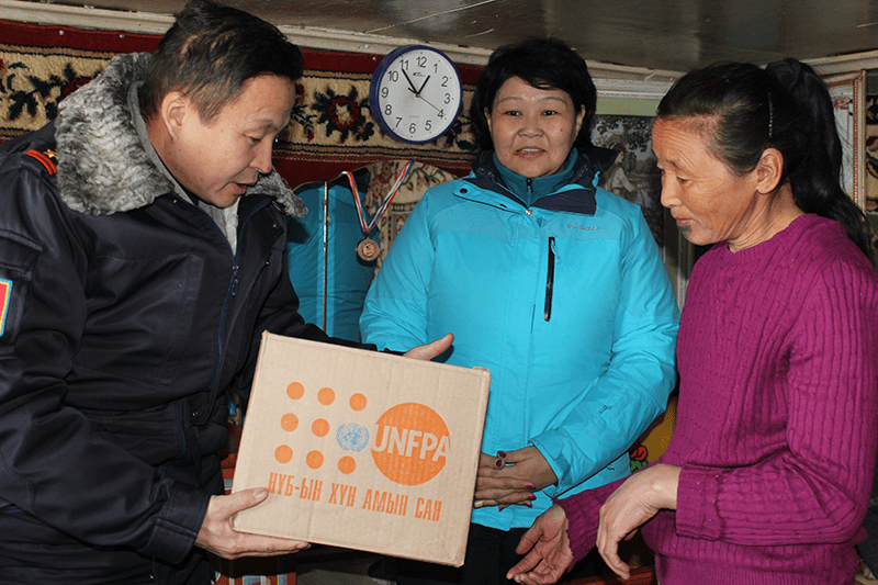 UNFPA also distributed dignity kits, which include hygiene supplies for women and girls, as well as flashlights and whistles to safely move about at night. © UNFPA Mongolia/Bayartsogt Shagdarsuren